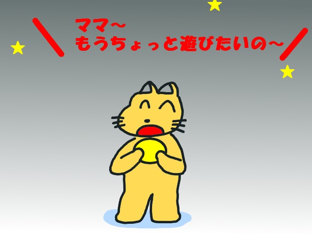 × [PR]上記の広告は3ヶ月以上新規記事投稿のないブログに表示されています。新しい記事を書く事で広告が消えます。 姪は、部屋で一人遊び中。 ペタペタ・・・ゲル状の物体を混ぜ合わせていました。 ネバネバ・・・ 青?緑? 。。。あれ、玩具かぁw 私 「それは何かなー?」^_^; 姪 「若返りジェルを作ってるの~」(^◇^) 。。。若返りジェル?( ̄Д ̄;; 私 「姪が若返ったら、赤ちゃんになっちゃうよ」(〃゚д゚;A アセアセ・・・ 姪 「えっ!・・・若返りジェルを使ったら、赤ちゃんになっちゃうの?」(?_?) 逆に聞き返されてしまいました。(爆) 。。。6歳で若返るのかい?(|||▽|||) どうやら、テレビアニメでそういう物が出てきたらしい。 その後、母親(妹①)相手に言っていたそうです。 姪 「姪は人気がないけど、甥(弟)は人気があるから、 姪が若返りジェルで赤ちゃんになって、人気者になるの!」(^◇^) 。。。甥ばかり大事にしている訳じゃないんだけど・・・ まだ、目を離すと何を口に入れたりするから分からないからねぇ。(~_~;) 帰り際、叔母(妹②)相手にボール遊びをしていました。 妹① 「帰るよー」(^_^;) 姪 「もうちょっと遊びたいの~」(^◇^) 妹②に、こっそり告げる姪。 妹② 「うーん・・・ママと交渉してごらん?」(・・;) 姪 「交渉って何?」(^◇^) 妹②「えーと・・・」(^^ゞ 交渉の意味を知らない姪相手に、とっさに説明できず、言葉に詰まる妹②。 妹② 「・・・お話しして!」(・。・; 姪の背中を押し、母親(妹①)に向けさせての一言がやっとw 姪 「・・・・・・・・・ママ~、もうちょっと遊びたいの~」(^◇^) 姪には通じたようです・・・が、 妹① 「……パパが、もうじき帰ってくるから駄目!」(`´) 姪 「わ~ん」。。(>_<)。。 。。。交渉決裂! 姪は、半泣きで車に乗せられて帰って行きました。 ・・・こうやって、人は経験を積み重ねていくんだねー。(・_・;) 姪 「あれ?・・・ない?ない?」(@_@;) 姪が、テレビの前で探し物をしているようです。 姪 「ママ~、テレビのがないの~?」(*_*; 妹① 「・・・・・・・・・・」(^_^;) 黙って甥を指差す母親(妹①)。 そこには、リモコンを持ったまま歩く甥が! 姪 「あ~、持っていっちゃダメじゃんか」(`´) 。。。甥は、30mほど歩けるようになりました。 バランスをとるためなのか、両手を前に出して歩くので、キョンシーのようです。(~_~;) 最近のお気に入りは、テレビのリモコン。 周りの人が操作をしている姿を見て覚えたらしく・・・。 ちゃんとテレビに向かって、ピッ!と。 ・・・シーン! 音が消えました。消音ボタンを押したようです。 ・・・ピッ! 「冷蔵庫を開ける○○」・「振り返る○○」 いきなり副音声。 ピッ! 「今日のニュースです!!」 大音量! ピッ! 「ザーーーーッ!」 砂嵐ww 毎日こんな感じです。 今日も、廊下にリモコンが落ちていました。やれやれ。(-_-;) 忍者初の絵日記ですが・・・